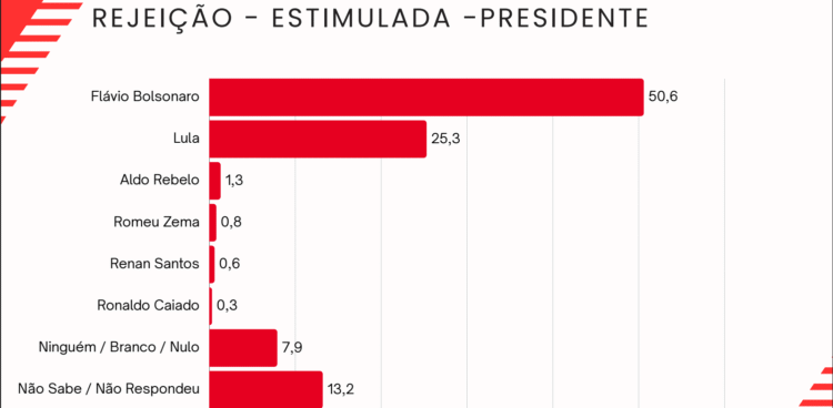 O filho do ex-presidente Jair Bolsonaro (PL), que cumpre pena de 27 anos de prisão por tentativa de golpe de estado, lidera no quesito rejeição.