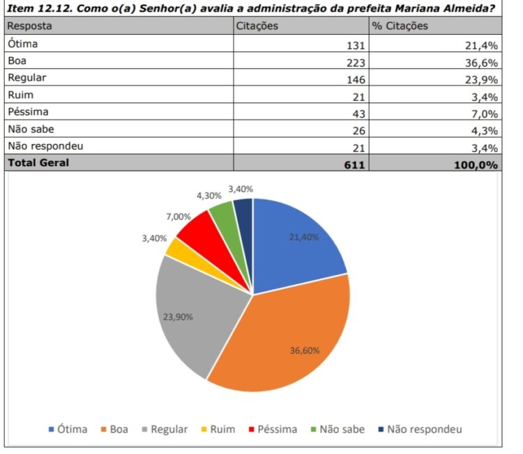 A prefeita de Pau dos Ferros Marianna Almeida (PSD) tem uma provação de 72,2%. Os números são do Instituto Sensatus.