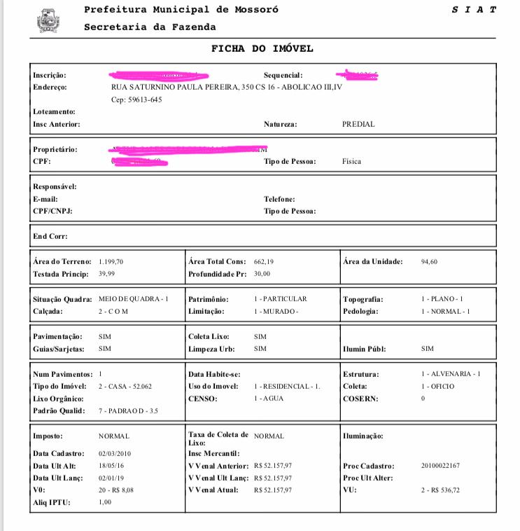 É importante destacar que os dados compõem o cadastro fiscal, que é utilizado unicamente para cobrança dos impostos municipais, não sendo o objetivo do cadastro apresentar um inventário do patrimônio do Município.