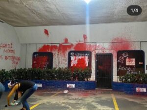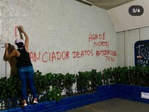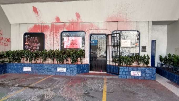 Um grupo de mulheres do Movimento dos Sem Terra (MST) realizou um protesto na madrugada de hoje pichando a fachada do escritório do deputado federal General Girão (União Brasil) em Natal.