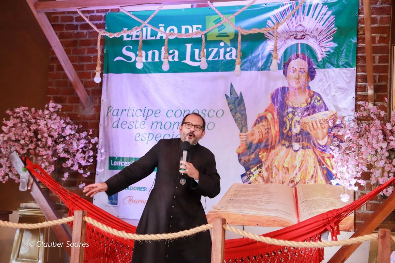 “Convidamos todas as pessoas para participarem de mais esse evento descontraído e importante. Todo o recurso arrecadado é revertido para a Paróquia de Santa Luzia e para a festa da nossa padroeira. Padre Gleiber, que já costuma fazer leilões em diversas festas religiosas do estado, sempre com muita alegria, vai estar à frente, mais um ano, do nosso leilão”, disse padre Flávio Augusto Forte Melo, coordenador-geral da Festa de Santa Luzia.