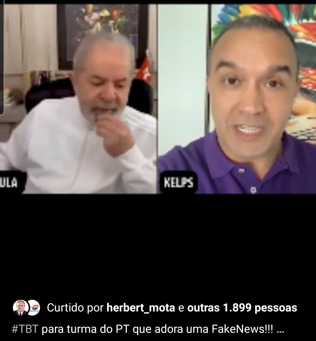 Kelps até poderia fazer a montagem no estilo react, algo bem comum no Youtube, desde que deixasse bem claro para o público que se trata disso, mas na legenda ele só afirma que é uma resposta a uma fake news do PT dando a entender que no passado disse que Fátima era mentirosa numa discussão com Lula.