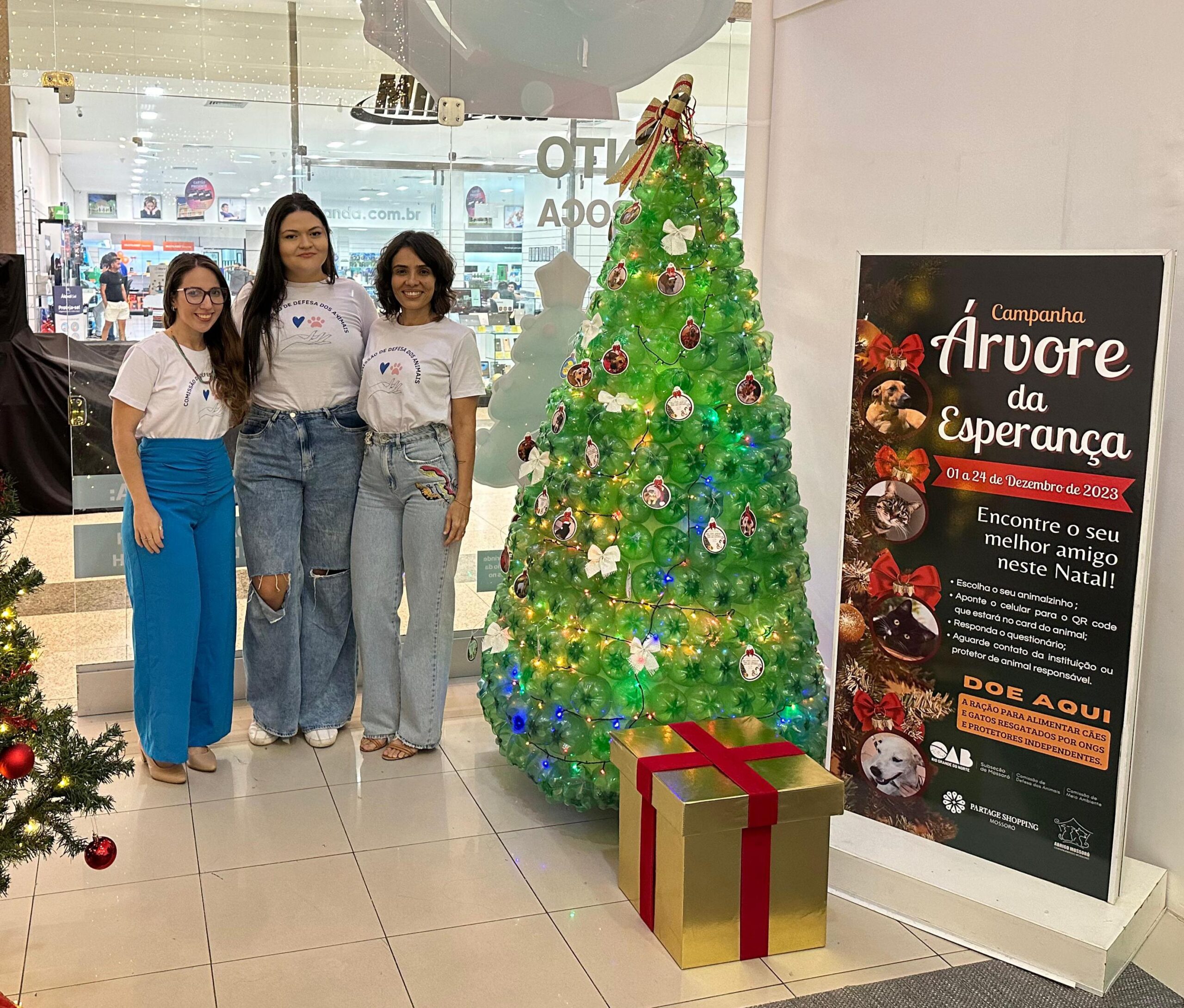 Em parceria com a Comissão de Defesa dos Animais da OAB Mossoró, ONGs de proteção animal e protetores independentes, o shopping está realizando a campanha Árvore da Esperança – ‘Encontre o seu melhor amigo neste Natal’, é composta por uma árvore sustentável feita de garrafas pet e repleta de imagens dos animais que podem ser adotados e informações sobre cada um deles. A ação visa incentivar a adoção responsável de cães e gatos além do recebimento de doações de ração para ajudar nos cuidados a esses animais resgatados.