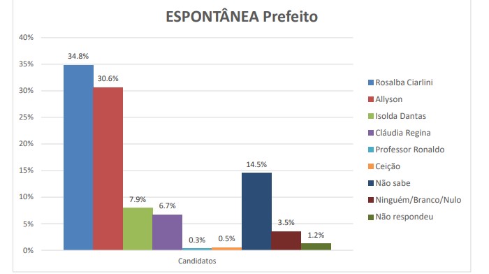 A pesquisa Sensatus contratada pela Associação Comercial e Industrial de Mossoró (ACIM) aponta liderança da prefeita Rosalba Ciarlini (PP) com 4,2% de vantagem sobre Allyson Bezerra (SD).