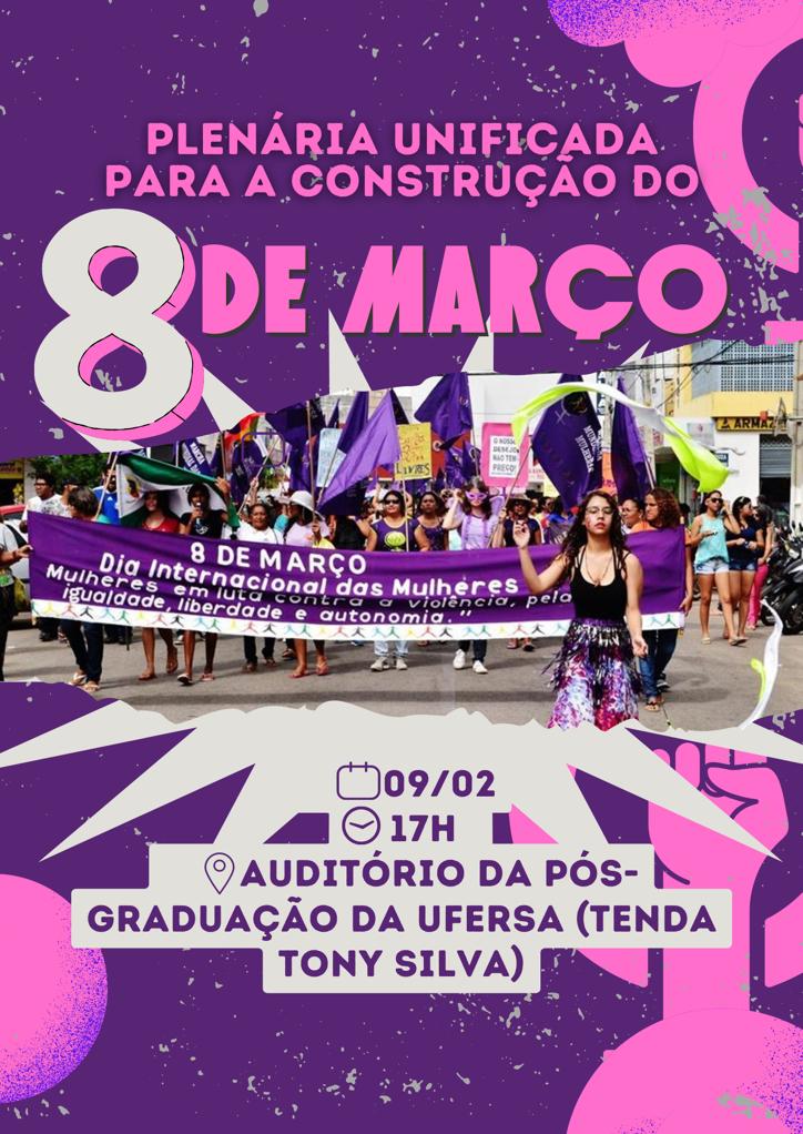 Mais um 8 de Março se aproxima, Dia Internacional de Luta das Mulheres e dia de ocupar as ruas, numa data que simboliza a luta histórica das mulheres e sua resistência. Para a construção do 8M em Mossoró, as diversas organizações engajadas no processo de articulação da mobilização, convidam todas as mulheres, entidades sindicais, movimentos sociais, coletivos, partidos, estudantes, a participarem da plenária unificada que acontecerá nesta quinta-feira (09/02), a partir das 17h, na Pró-Reitoria de Extensão e Cultura da Ufersa (Tenda Tony Silva).