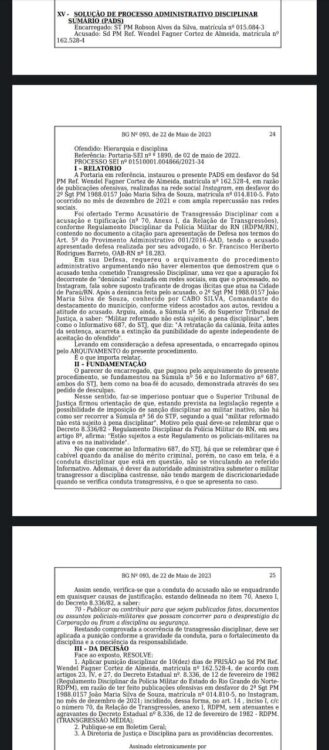 No entanto, o PADS entendeu que vale o Decreto 8.336/82 que trata do Regulamento Disciplinar da Polícia Militar do RN, em seu artigo 8º, cuja redação é: “Estão sujeitos a este Regulamento os policiais-militares na ativa e os na inatividade”. Outro ponto é que as regras estabelecidas pelo STJ são relativas a questões criminais e o caso envolvendo Lagartixa é na esfera disciplinar.