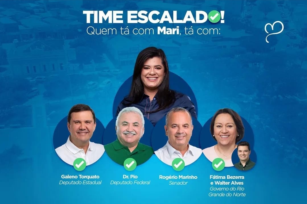 A prefeita de Pau dos Ferros Marianna Almeida (PSD) anunciou a chapa de candidatos dela nas eleições deste ano. Ela misturou em seus apoios a reeleição da governadora Fátima Bezerra (PT) e para o Senado o ex-ministro do desenvolvimento regional Rogério Marinho (PL), que estão em campos opostos na política nacional e estadual.