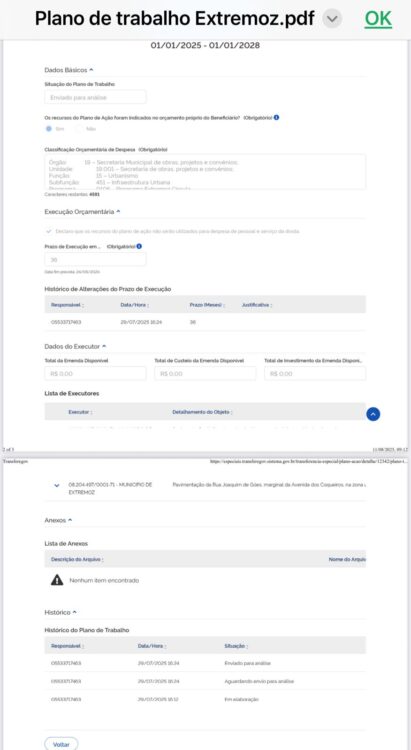 “Estranhamente, neste ano, o sistema SIOP no Transferegov.br. do Governo Federal encerrou o recebimento às 9h da manhã — algo que não ocorria em anos anteriores”, complementa.
