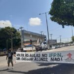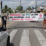 Um protesto realizado na manhã desta quinta-feira, 17, percorreu o trecho entre o Campus da UERN na Zona Norte de Natal até a sede do IFRN na Avenida Salgado Filho.