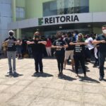Alunos e professores exigem a posse do reitor eleito José Arnóbio de Araújo Filho que foi eleito em dezembro, mas por conta de uma denúncia do MBL responde a um Processo Administrativo por causa de um banquinha Lula Livre colocado no campus do IFRN em Natal.