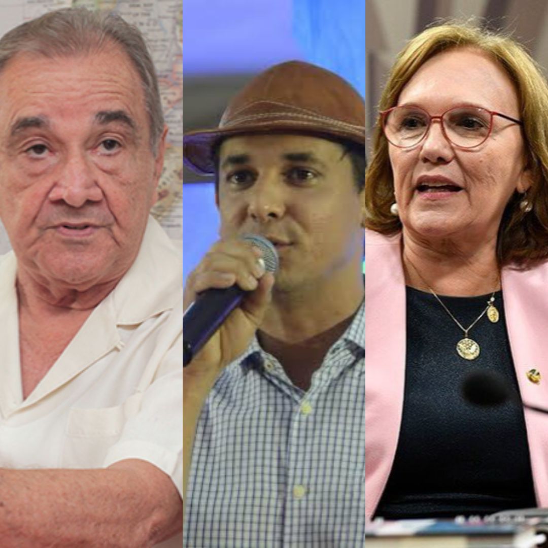 De um lado, José Agripino Maia, presidente estadual do União Brasil. Do outro a senadora Zenaide Maia (PSD) e o marido dela o prefeito de São Gonçalo do Amarante, Jaime Calado (PSD).