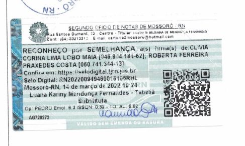 É que no contrato de compra e venda ficou a cargo de Roberta Ferreira Praxedes Costa, esposa de Oseas Monthalgann, cuidar da documentação para a sequência do registro do imóvel após a conclusão da transação.