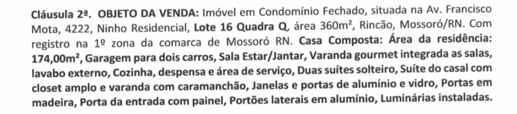 O próprio contrato de compra e venda registrado em 14 de março de 2022 no cartório (2º Ofício de Notas) deixa claro trata-se de uma casa e não de um terreno.