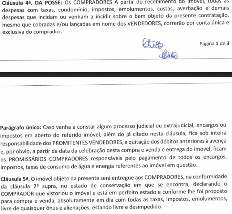 No contrato ficou acertado que caberia aos compradores concluírem a regularização da casa assumindo os pagamentos de taxas e impostos.
