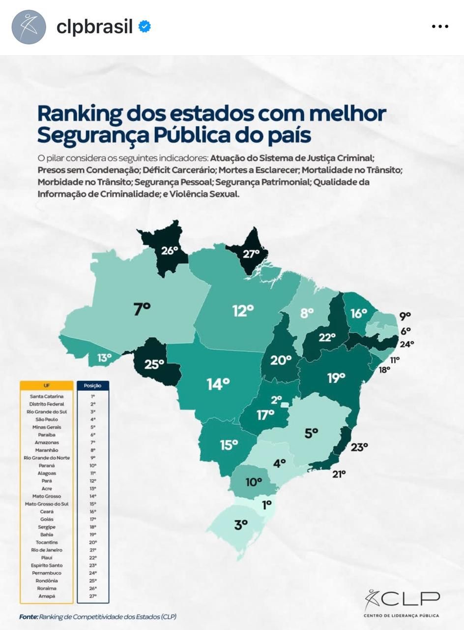 O Rio Grande do Norte é o nono estado com melhor segurança pública do país. É o que aponta o Ranking de Competitividade dos Estados do Centro de Liderança Pública (CLP), uma organização suprapartidária que busca engajar a sociedade e desenvolver líderes públicos para enfrentar os problemas mais urgentes do Brasil.