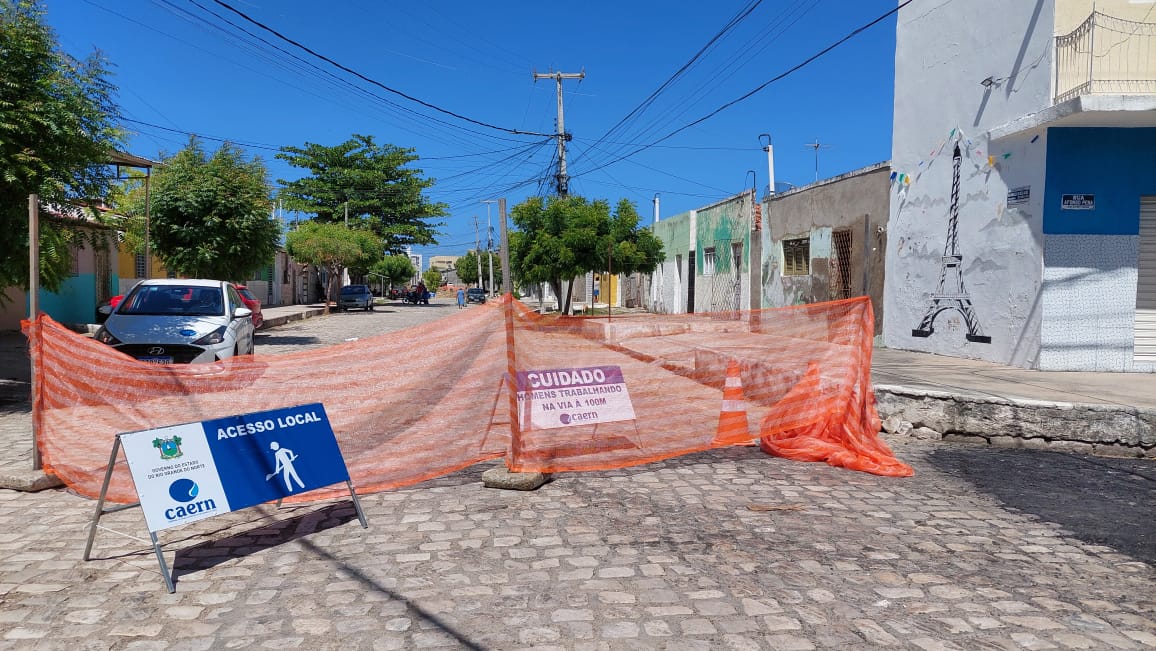 A Caern está executando obra de esgotamento sanitário e solicita que os motoristas evitem essa parte da rua. Está sendo permitida a passagem somente dos moradores que residem no local.
