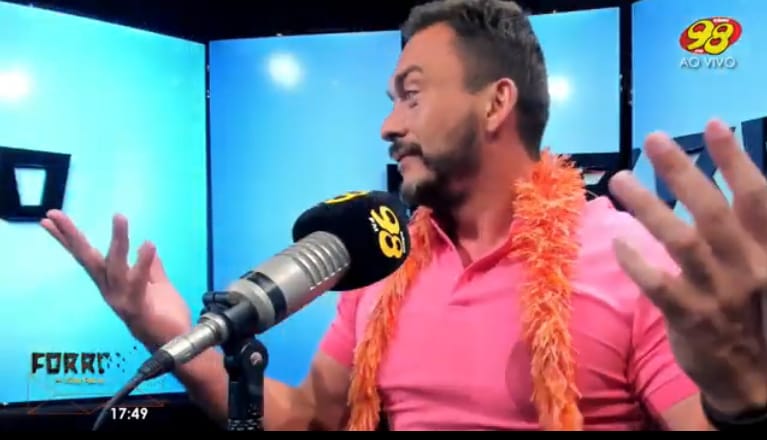 Ele foi para a entrevista na 98 FM estrategicamente preparado para lidar com a situação. Usou camisa cor-de-rosa (lembre-se que estamos num país governado por gente que acha que menino veste azul e menina veste rosa) num recado semiótico em torno da segurança que tem em relação a própria sexualidade.