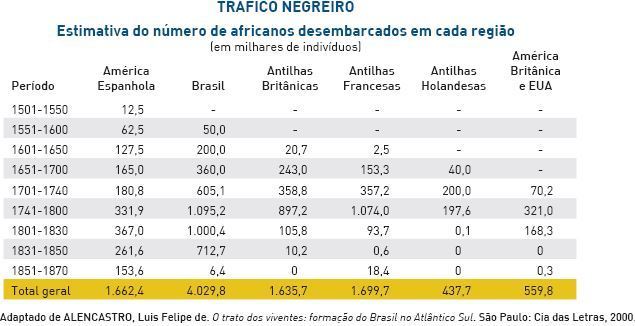 No Brasil, para alguns, pretensamente, o racismo seria mais arrefecido, pela maior miscigenação ocorrida por aqui e talvez pelo suposto caráter mais “cordial” da elite escravocrata brasileira, como cunhou Sérgio Buarque de Holanda (1995). Para outros autores, essa pretensa cordialidade revelava apenas a debilidade da aristocracia rural brasileira no mundo. A discriminação racial também segue até hoje como uma das marcas mais profundas da sociedade, sendo apenas mais disfarçada. O Brasil foi de longe a colônia que mais recebeu escravos nas Américas, quase 8 vezes mais que toda a América Britânica e os EUA juntos, como pode ser visto na tabela abaixo, extraída de Luis Felipe de Alencastro (2000).