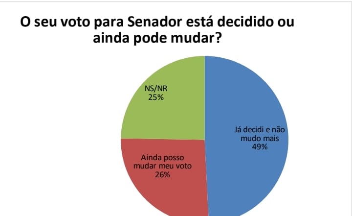 Dos eleitores que votam em algum dos candidatos, somente 49% dizem estar decididos e não mudam mais o voto. Já 26% admitem mudar de voto e 25% não souberam responder.